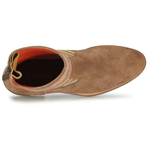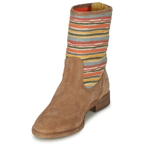 On fond pour ces boots résolument tendance de Goldmud ! La marque nous propose un modèle unique, bariolé de couleurs chaudes au dessus de la cheville et agrémenté d’une fermeture zipée sur la tige.