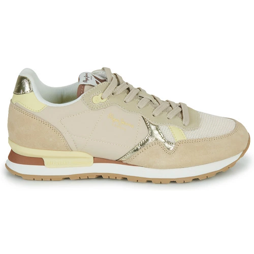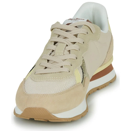 A toutes les adeptes de sneakers désireuses de nouveauté, Pepe jeans répond par un modèle qui fusionne mode actuelle et silhouette urbaine. Aussi tendance que confortable, elle associe coloris beige et dessus en cuir et synthétique. La Brit Heritage W recèle une doublure en synthétique tandis que sa semelle extérieure est en synthétique. Un modèle qui ravira les adeptes du genre.
