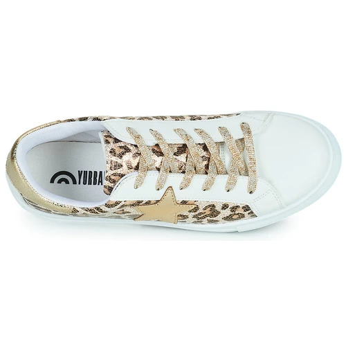 Cette basket basse signée Yurban est tout simplement essentielle. Aussi tendance que confortable, elle associe coloris doré et dessus en synthétique. Une semelle en synthétique et une doublure en textile contribuent au succès de ce phénomène. Un modèle qui comblera les fans de sneakers.