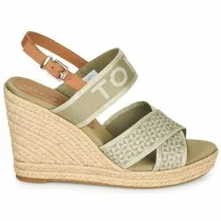 Chaussures Femme Tommy Hilfiger – TOMMY WEBBING HIGH WEDGE SANDAL Kaki